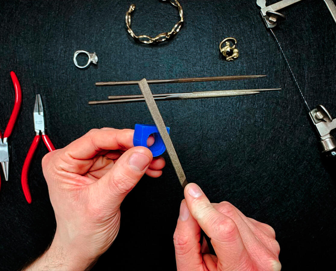Ci ispiriamo alla metallurgia del 2300 a.C., quando il metallo era un legame primordiale tra uomo e terra.Il processo inizia sul banco dell’orefice. È lui a studiare il reperto — ogni coprolite è diverso — e a costruirvi attorno la forma in cera. Non interpreta: ascolta. La materia detta i limiti, il gesto li rispetta.La fusione a cera persa non è un passaggio tecnico, ma una soglia. Il bronzo non abbellisce né riscatta: agisce come struttura. Avvolge, trattiene, rende indossabile ciò che altrimenti resterebbe lasciato ai margini.Non è un montaggio. È un’unione irreversibile.Per garantire l’immortalità dello specimen, il reperto viene infine stabilizzato con resina epossidica ad alta resistenza: un sigillo invisibile che ne preserva la mineralizzazione ancestrale, proteggendola per i secoli a venire.Così nasce lo specimen W O N D E R S H I T: un gioiello che non rappresenta il tempo. Lo contiene.